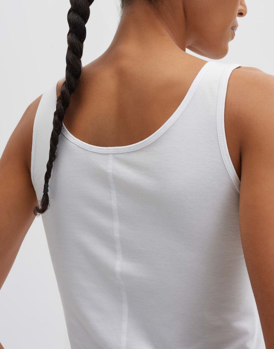 schmale Passform, figurbetont geschnitten, normale Länge, ärmellos, Rundhalsausschnitt, Rückenlänge ca. 62 cm bei Größe 36, BCI Cotton Mix, Jersey, weicher Griff, elastischer Stoff, Längsnaht hinten Material