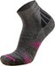 Die Trekking- und Outdoorsocken S05 von Wapiti überzeugen durch ihren hohen Anteil feiner Merinowolle. Die verwendete Merinowolle wird in ihrer Herstellung speziell veredelt wobei im Vergleich zu herkömmlichen Methoden nur ein Bruchteil an schädlichem CO2 freigesetzt wird. Merinowolle sorgt dank ihrer thermischen Funktion für ein optimales Fußklima. Zusätzlich wird ein hoher Anteil an recyceltem Polyester aus Alltagsgegenständen verwendet. Technisch sind sie durch die reibungslose Kettelnaht und diversen Verstärkungen ausgestattet. Hergestellt in der EU mit fairen Materialien.