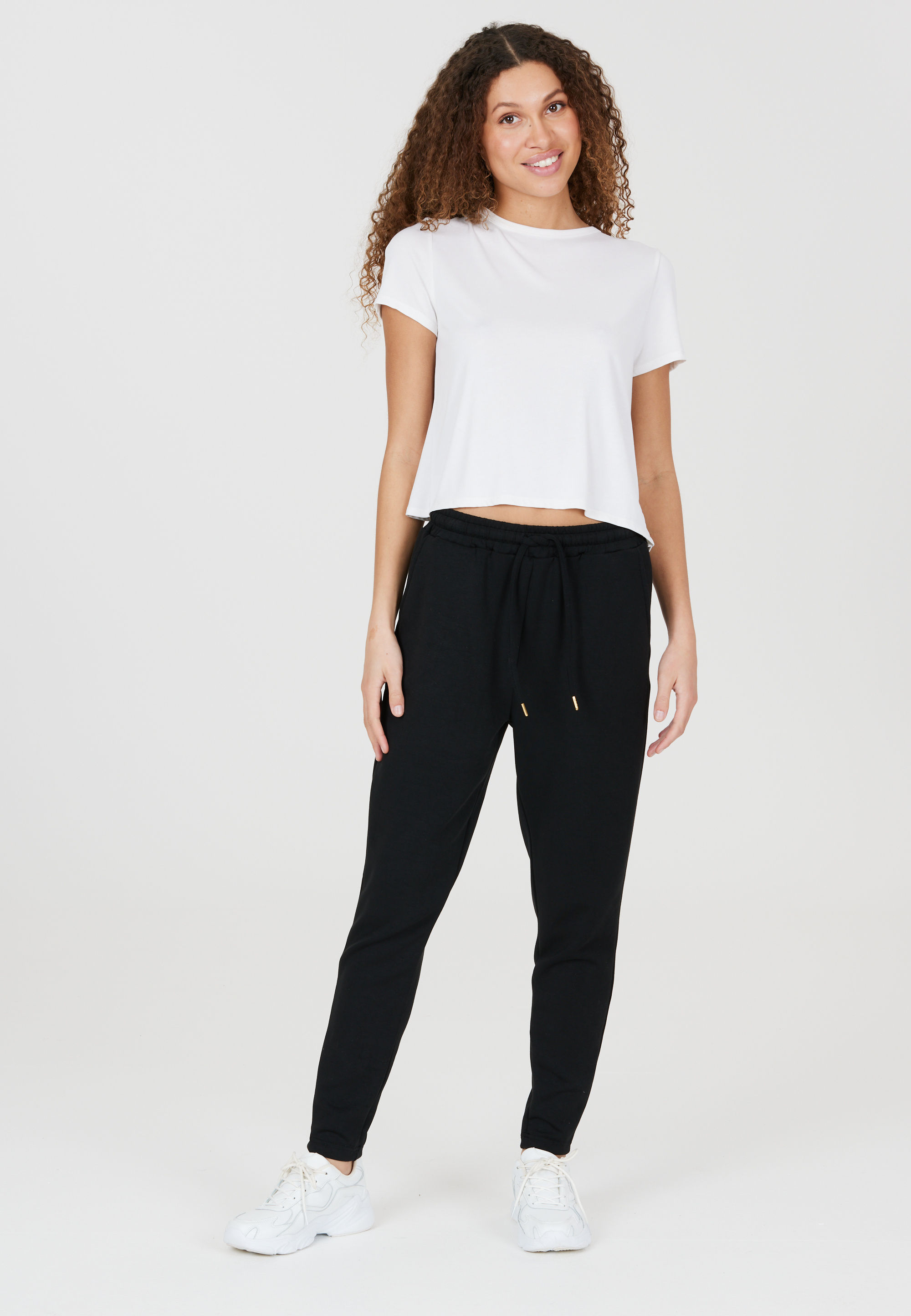Die "Jacey V2" Sweatpants für Damen von Athlecia ist in ihrer simplen Art die ideale Sweatpants für entspannte Stunden! Sie ist aus 51% Polyester, 44% Modal und 5% Elasthan hergestellt, ist besonders weich und bietet eine superbequeme Passform mit Stretch-Qualität. So kannst du dich wunderbar frei bewegen. Der elastische Bund mit Tunnelzug macht das An- und Ausziehen komfortabel.