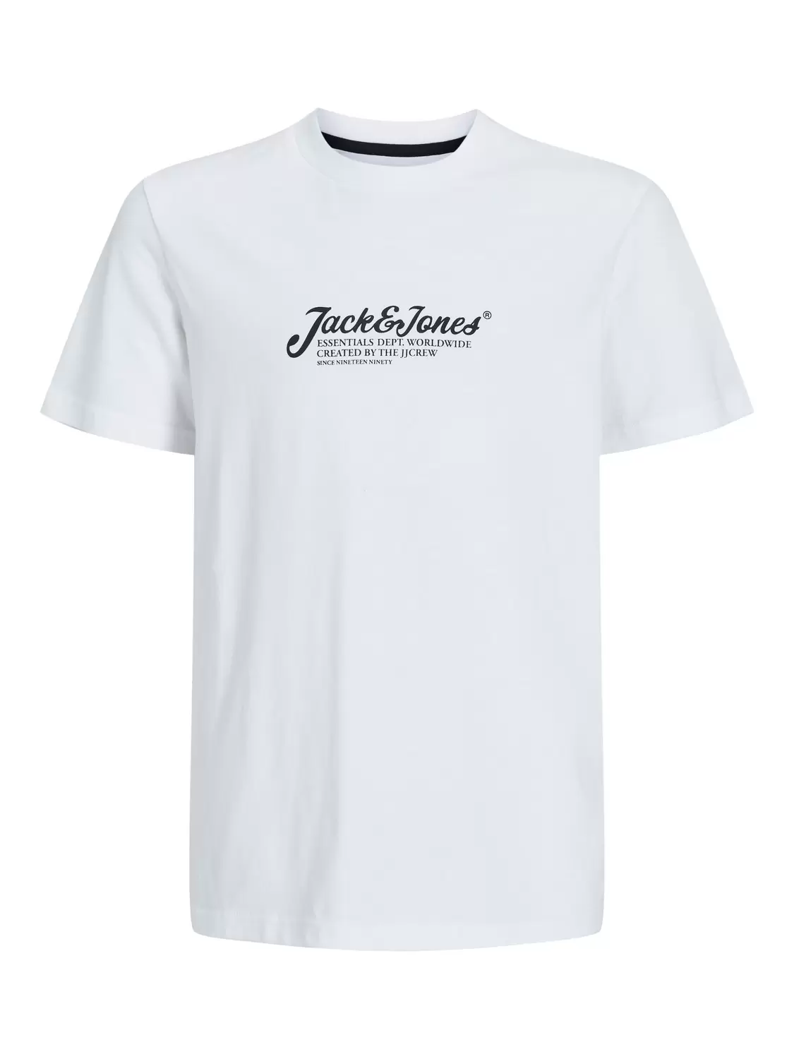Nichts ist so unkompliziert wie ein T-Shirt. Es passt einfach zu allem in deinem Kleiderschrank.Gekämmtes Jerseygewebe ist dehnbar, fühlt sich weich an und ist perfekt für den Alltag.Entdecke die aufregende Welt von Jack and Jones Junior, in der Mode durch jugendliche Energie und lebhaften Charme zum Leben erweckt wird. Unsere Kollektionen bieten eine Mischung aus neuen, trendigen Designs, die Jungen im Alter von 3-16 Jahren ansprechen. Tauche in hochwertige und bequeme Styles ein, die speziell für junge Fashion-Liebhaber entwickelt wurden. Bei Jack and Jones Junior interpretieren wir Mode für Jungs im Alter von 3 bis 16 neu, indem wir coole Passformen und moderne Styles kombinieren und dabei immer wieder Elemente aus der Erwachsenenmode einfließen lassen.. - Produkttyp : T-shirt - Hals : Rundhalsausschnitt - Ärmel : Kurzarm - Print : Gummidruck für Weichheit - Körperform : Junior - Passform : Normal geschnitten